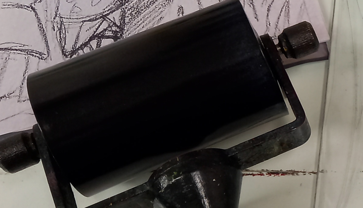I was down at Swansea Print Workshop this afternoon, doing loads of monotypes (more about those tomorrow) and as I was cleaning up at the end, the printing inks blended together. I liked it. It was a pity to wash them away. Technical note: they’re Caligo Safe Wash oil-based relief inks in Process Yellow,Continue reading “Cleaning Up”