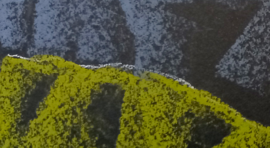 Travelling back from Beddgelert on the little steam train, the storm was lifting and although the winds were still high, the rain stopped and a strange light flooded Eryri, backlighting the mountains. I worked very quickly into my black sketchbook with Sennelier and Daler Rowney soft pastels, held on their side flat against the paper,Continue reading “Eryri: 5”