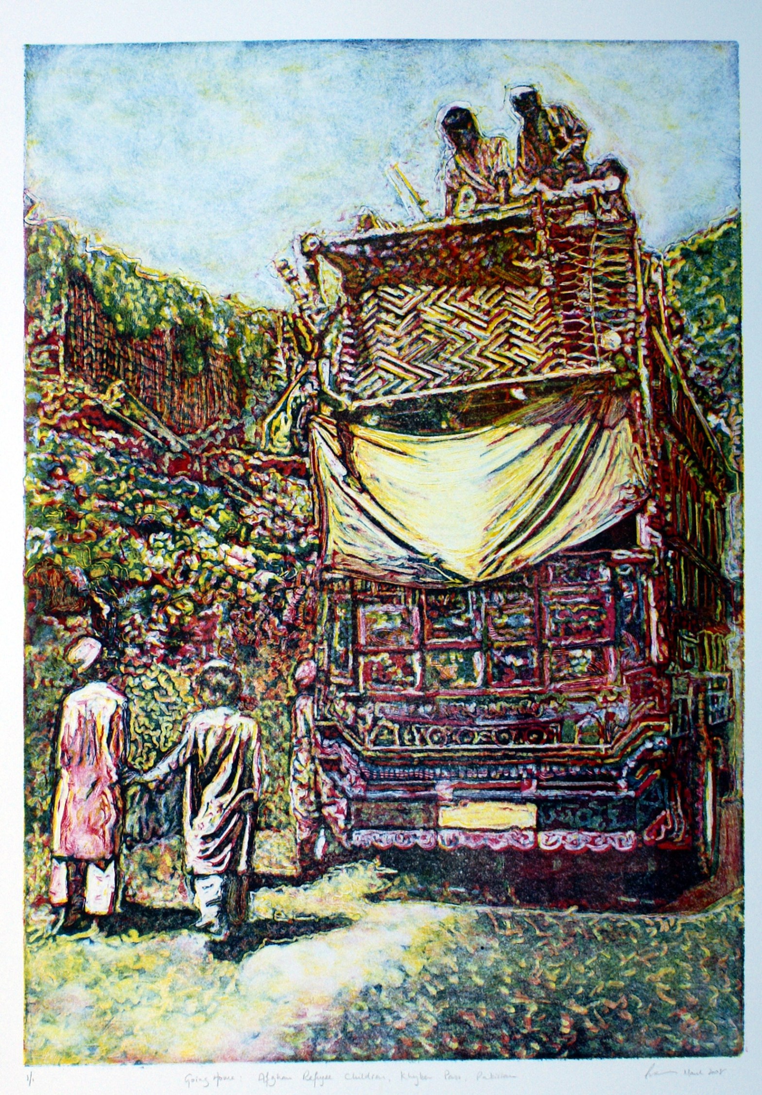 I usually work from drawings done from life, only occasionally from a photograph and this is one of the rare original prints, a monotype, done entirely from a photo. I took the original image on a digital camera when I first visited Pakistan back in 2007, an amazing, life-changing journey. We travelled up the KhyberContinue reading “Returning Children”