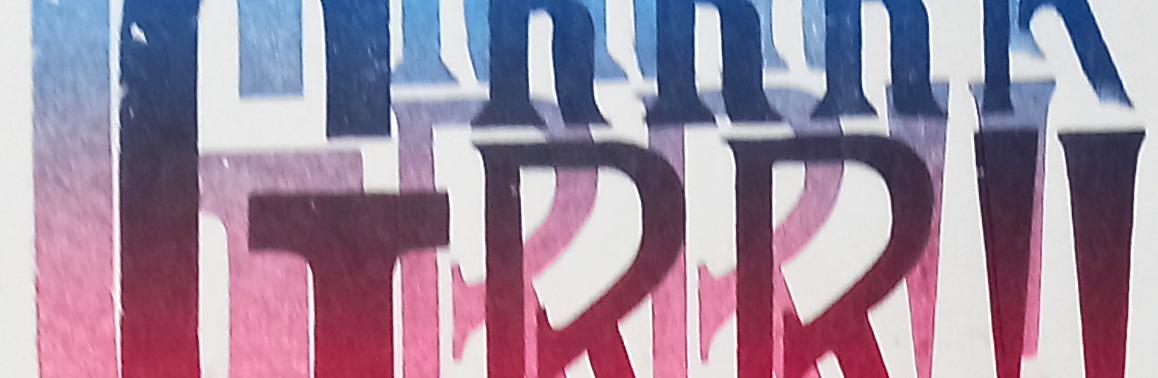 I printed the type form I put together at the weekend, using a rainbow roll of Pthalo Green and Rhodamine Red oil-based relief inks. I printed with Swansea Print Workshop‘s Columbian Press onto Kent paper. I love the way the well-worn vintage letters have dints and dimples and rough areas that add to the characterContinue reading “Rainbow Type.”