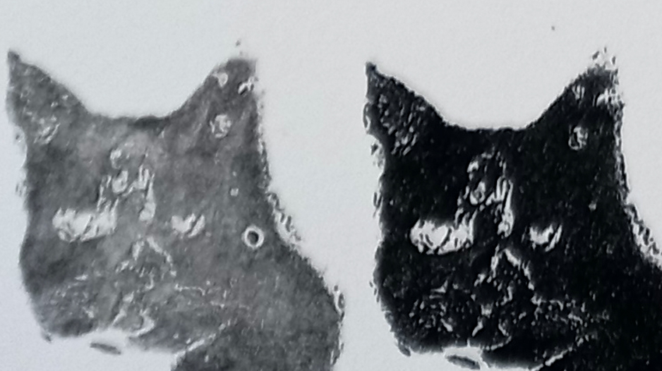 It’s #Caturday / Saturday again and here’s the little fluffy tyrant, Sparta Puss, photographed, scanned, uploaded into Adobe Photoshop and put through the Threshold adjustment to turn her into a stark black and white image. There’s a reason I was doing this – more to come on that …..