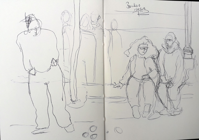 Men in hats are hard to draw. Well, not just men, anyone really. I find heads easy enough until someone puts something on them – hats, scarves, bandanas …. even a pair of sunglasses makes it harder for me to get the proportions right. Good practice though. I scribbled these chaps at the charity boulesContinue reading “Men In Hats”