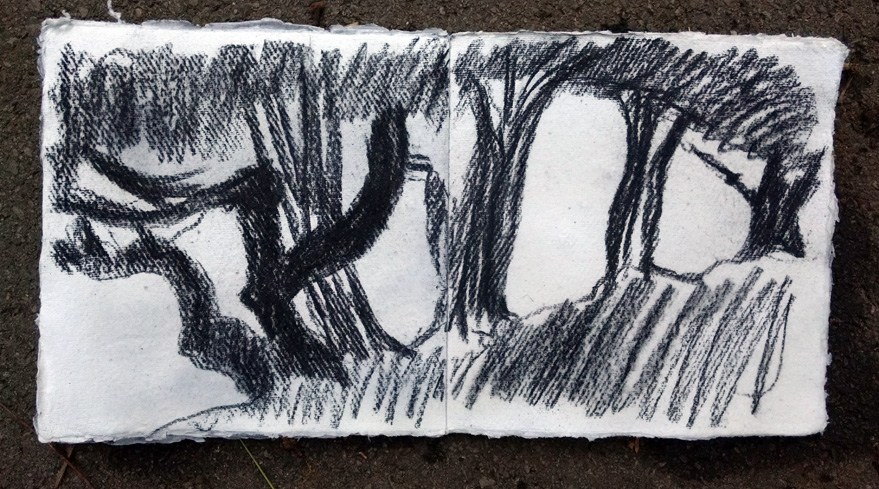 Husb and I are still following our lockdown exercise routine most days, even though the restrictions are much more easy going now. It’s a good system that’s kept us going for the past four months so we might as well keep it up. I stopped to do a charcoal sketch into my Khadi sketchbook ofContinue reading “The Old Yew And Rhubarb Crumble”