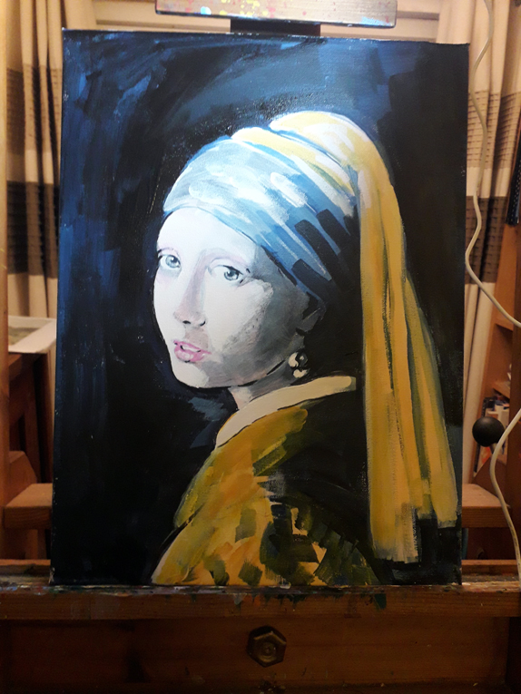 I’ve been tweaking my fake painting of Vermeer’s “Girl With A Pearl Earring” and I’m so very nearly there. I’ve slimmed down her cheeks and lifted the too-droopy left eyelid and firmed up her chin and jawline. But now there’s too much grey and black, the poor thing looks like she has five-o-clock shadow, soContinue reading “Still Tweaking The Five o Clock Shadow”